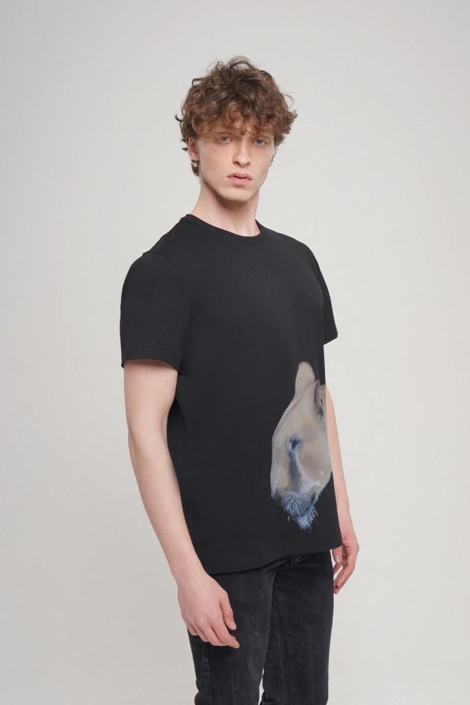 Ispirandosi alla mano di artisti iconici come Paul Gauguin, Auguste Rodin e Amedeo Modigliani e alla loro visione del mondo animale, la designer ha prima dipinto su tela aquile, tigri, leoni e cavalli selvatici e poi li ha impressi, grazie a una sapiente stampa transfer, direttamente sui capi per conservare la valenza artistica dell’immagine.