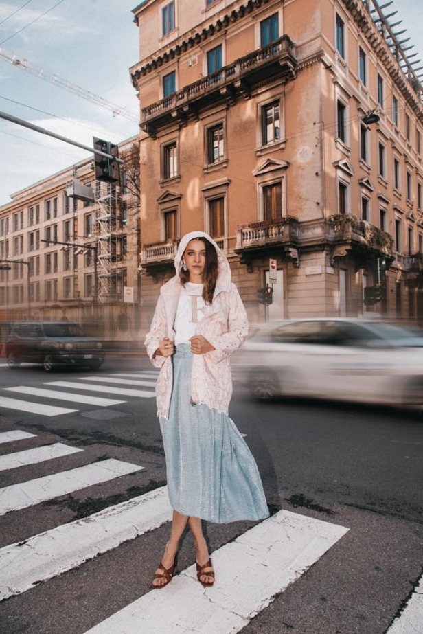 E poi c’è lui, il parka che non ti aspetti perché realizzato in tessuto tecnico con lavorazione a pizzo Sangallo.