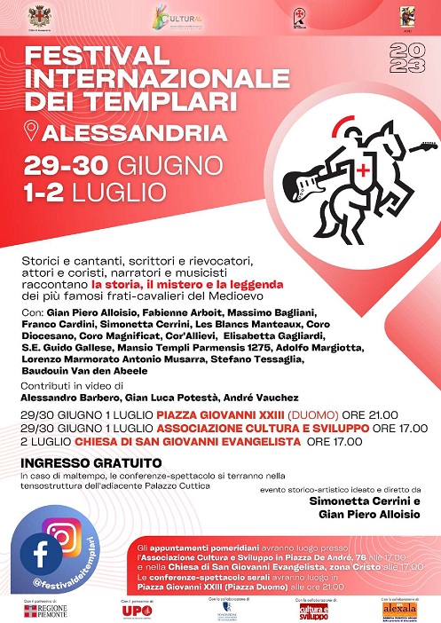 Dal 29 giugno al 2 luglio 2023 torna ad Alessandria con la sua terza edizione il Festival internazionale dei Templari, evento storico-artistio che fa parte della “Templars Route European Federation”, associazione che ha come obiettivo la creazione di un itinerario culturale europeo basato sui Cavalieri Templari.
