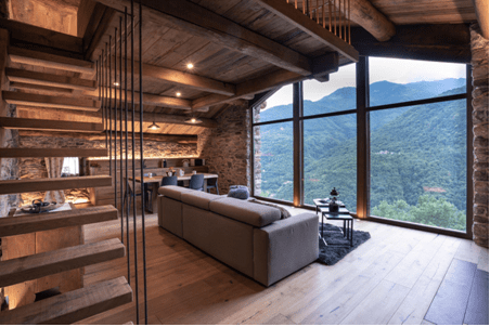 Ai piedi del Parco Nazionale del Gran Paradiso, questo rifugio accogliente gode di una posizione panoramica strategica. Nato dal recupero della casa dei nonni dei proprietari, di cui mantiene la struttura e i materiali del territorio, è un connubio tra tradizione e design.