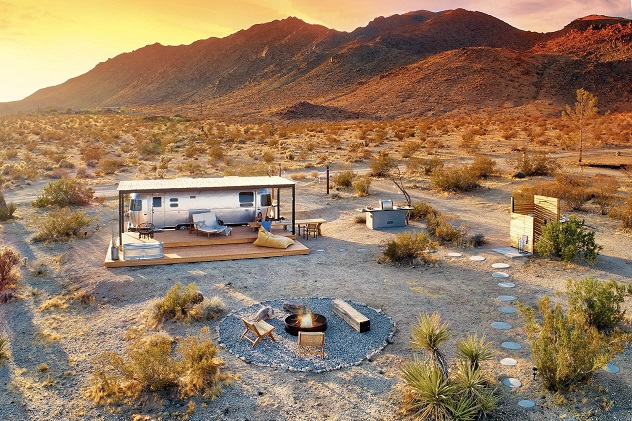 Vista sulle montagne del deserto, albe e tramonti mozzafiato, quiete totale. Esperienza indimenticabile assicurata in questo Airstream poco distante dal Joshua Tree National Park, ottimo punto di partenza per esplorare il deserto californiano. (Photo credit Brian Ashby).