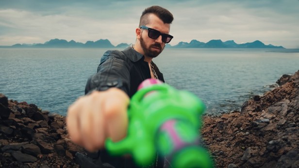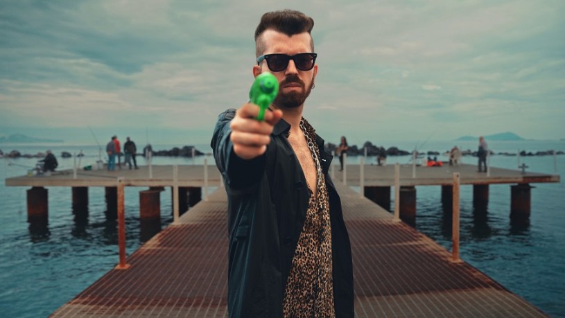 Anche “Pistola ad acqua”, come ogni singolo di STRE, trova la sua piena espressione nel videoclip ufficiale che accompagna il pezzo, una vera e propria rappresentazione scenografica dell’accezione apparentemente ludica, ma intima e profonda, del brano. Ideato, girato e montato dallo stesso artista,trae la sua genesi dall’ambivalenza racchiusa nel testo, che trasforma la bellezza di un ricordo – «ho ancora il tuo odore addosso» -, nella riluttanza del presente – «ho ancora la tua puzza addosso» -, portando in scena il rapporto di amore-odio tra due clochard, a cui se ne aggiunge, nel corso della narrazione, un terzo. E come ci ha abituati, STRE non lascia nulla al caso, e dal triangolo raffigurato nel video, avvalora il numero 3 studiando la fotografia e la color correction che ne esaltano l’importanza. Tre sono infatti anche le colorazioni utilizzate per le scene musicali, quelle dei clochard e quelle relative ai flashback. La sottile ironia che corrobora la clip, lascia spazio ad un finale tragicomico capace di smorzare la tensione, uno stallo alla messicana tipico dei western firmati da Sergio Leone.