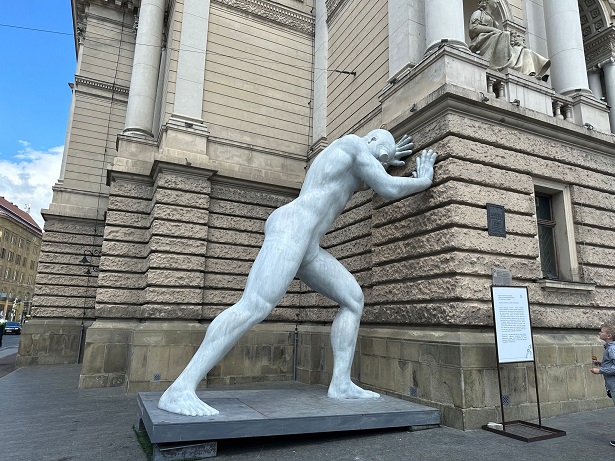 Questa figura, che rappresenta l’umana volontà di determinarsi di fronte agli eventi, è come il popolo ucraino in questo drammatico periodo di guerra: capace di sostenersi senza sosta nel momento più difficile e con la ferrea volontà di spingere indietro il nemico.