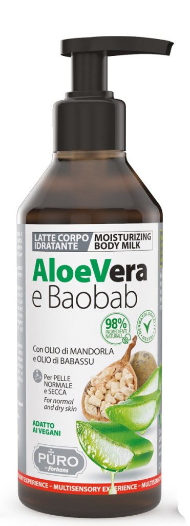Sempre della stessa linea il latte corpo Aloe Vera e Baobab PURO che idrata e ammorbidisce la pelle, nutrendola in profondità.