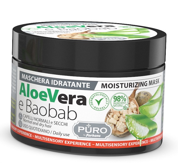 Per i capelli secchi e rovinati la Maschera Bio Idratante Aloe Vera e Baobab PURO idrata e addolcisce in profondità la cute senza appesantire i capelli, districandoli e lucidandoli.