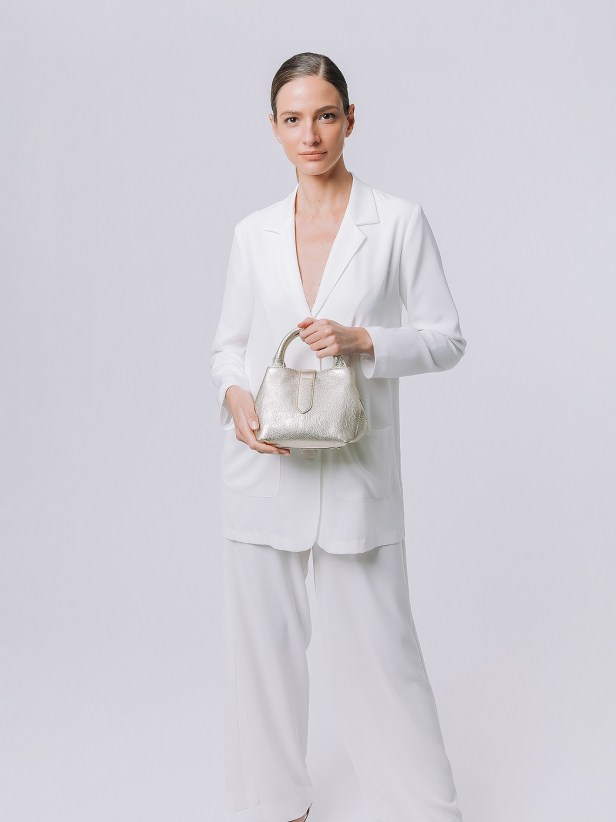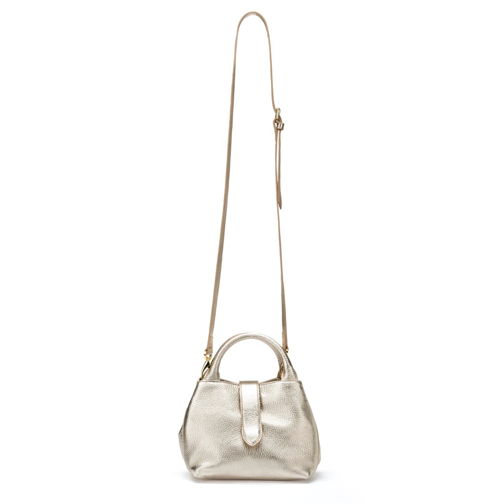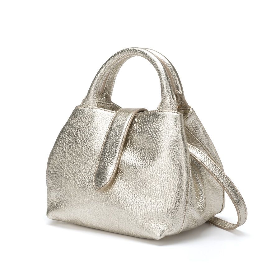 La Gold Princess Bag ha tutti gli ingredienti che hanno reso nel tempo Martino Midali un unicum: la sapienza artigianale di una borsa fatta a mano, in pelle martellata; il gusto di un design essenziale e naturalmente elegante, che si ritrova da sempre nelle creazioni del brand.