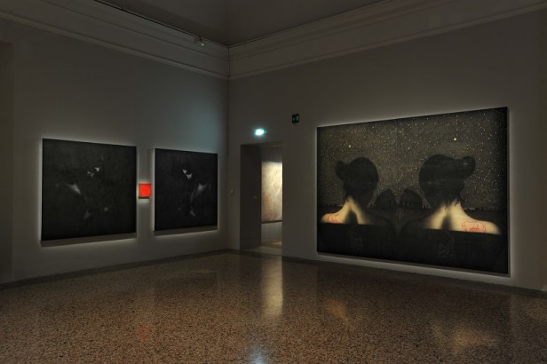 Nelle immagini: Veduta della mostra Omar Galliani. Diacronica. Il tempo sospeso, Palazzo Reale, Milano, 2023