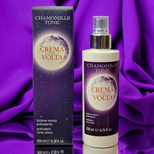 A rafforzare i benefici del prodotto c’è anche un’altra novità Made in Crema Una Volta, il CHAMOMILLE TONIC, una delicata soluzione acquosa adatta a tutti i tipi di pelle, priva di alcol, ricca disostanze emollienti e lenitive che mantiene la pelle giovane ed elastica, donandole freschezza e risultando ottima per rimuovere i residui di trucco e le impurità, rispettando il naturale livello di idratazione e completando così l’azione del latte detergente anti-aging. I numerosi principi attivi, comealoe vera in gel, miele, malva, estratti di tiglio, fiordaliso e fiori d’arancio.Utilizzato dopo la pulizia quotidiana del viso, il tonico consente di asportare i residui e le untuosità in eccesso lasciate dal latte detergente, rinforzando le difese naturali della pelle, prevenendo al contempo l’insorgenza di imperfezioni ed inestetismi cutanei.