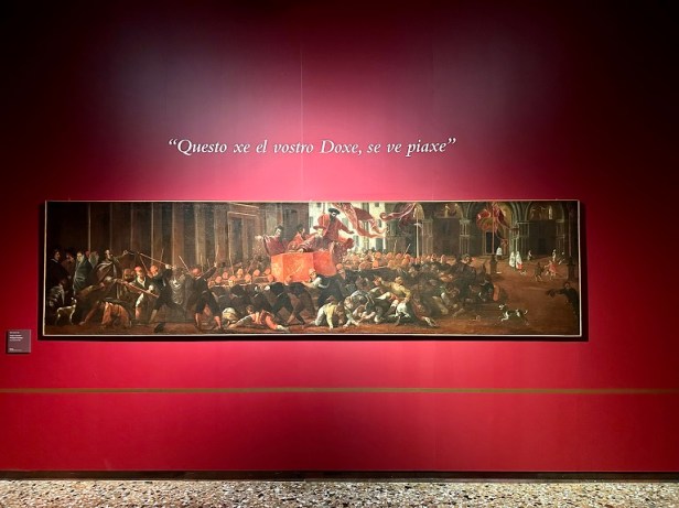 “Si tratta innanzitutto di un importante progetto di valorizzazione di opere provenienti dal patrimonio civico detenuto dalla Fondazione Muve e in gran parte solitamente non esposto – afferma la Presidente di Fondazione Muve Mariacristina Gribaudi – che raccontano i momenti salienti della storia dell’istituzione dogale. Con precise finalità didattiche, si è dato rilievo alle grandi vicende ma anche ad aneddoti e vicende minori, alla rigida etichetta cerimoniale, ad approfondimenti (anche lessicali) e curiosità, partendo proprio dalle testimonianze materiali in Mostra”.