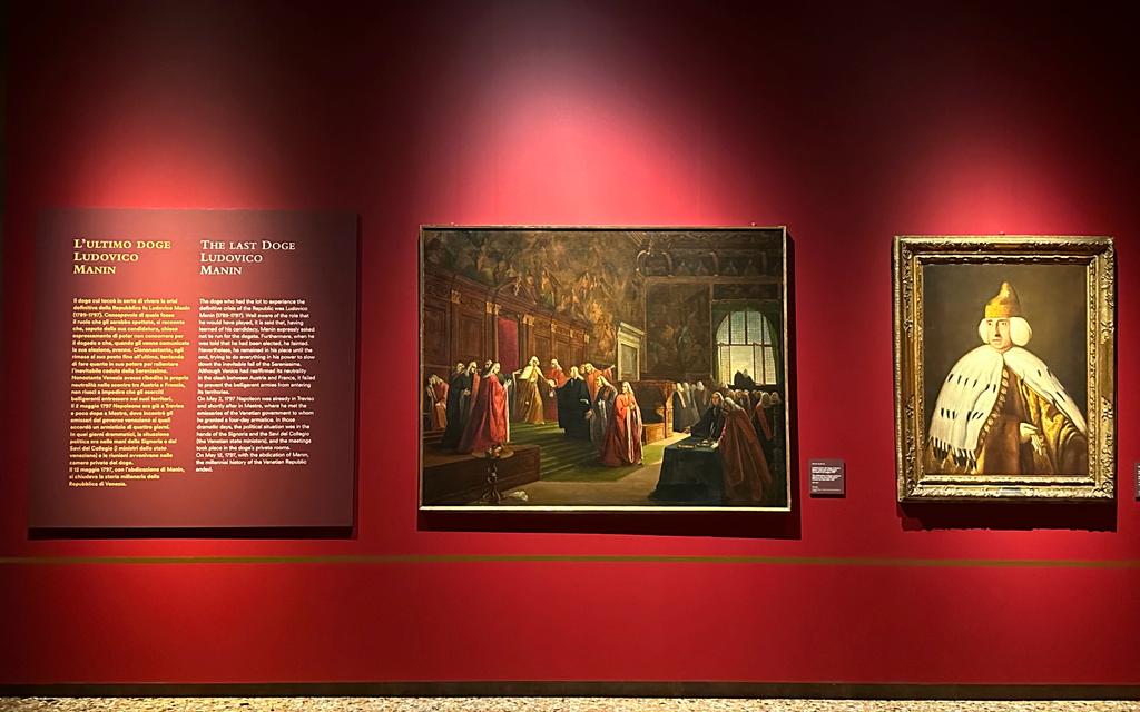 Il percorso si chiude con una sala che illustra le vicende degli ultimi dogi e un focus sull’ultimo doge Ludovico Manin, la cui abdicazione nel 1797 corrisponde alla caduta della Repubblica e alla fine della storia della Serenissima. L’ultima delle dodici sale del nuovo percorso tematico del Ducale è dedicata ad attività didattiche e di approfondimento a cura dell’Ufficio Attività Educative.