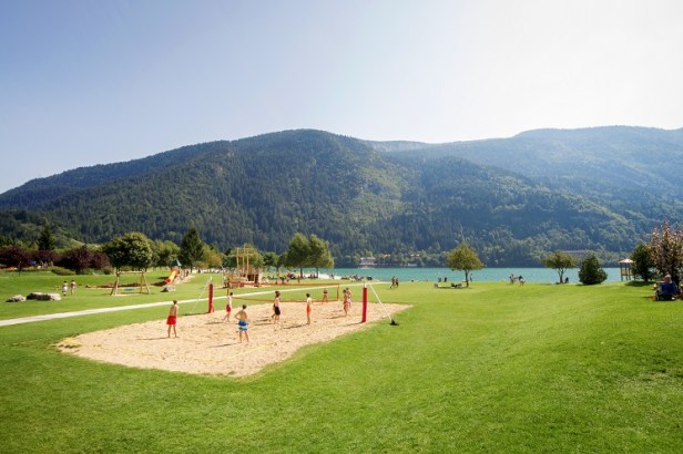 La “spiaggia” verde di Molveno, in Trentino