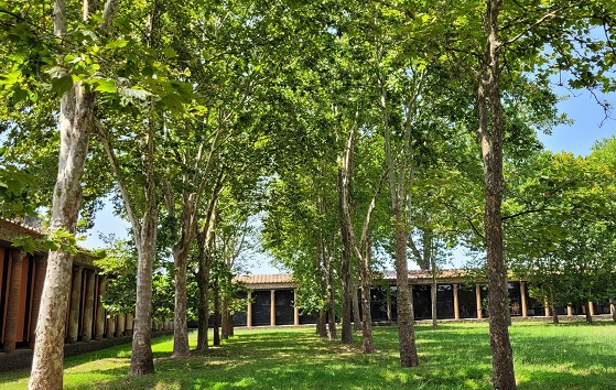 Dall’ingresso invece di Piazza Esedra, si segnalano le zone in ombra della pineta posta lungo il viale delle ginestre di accesso in direzione del quartiere dei Teatri. Ma anche l’Antiquarium, spazio museale che espone i reperti più rilevanti che raccontano la storia di Pompei, inclusi i calchi delle vittime dell’eruzione. Nei pressi del teatro, è quasi completamente in ombra la suggestiva area del Foro triangolare. E lungo via dell’abbondanza l’orto botanico, che sarà aperto per consentire soste fresche in questi gironi.