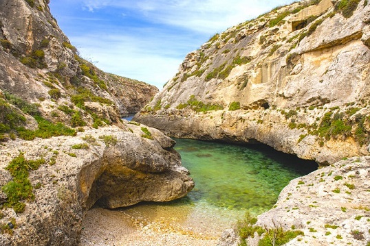 Riservata, perché raggiungibile solo da una strada non asfaltata di campagna, e ben nascosta tra le rocce, si trova Wied il-Ghasri. Questa insenatura serpeggiante, incuneata tra aspre e alte scogliere, è il luogo di balneazione perfetto per chi cerca pace e tranquillità, anche se in estate qualche altro amante della quiete, alla ricerca di un luogo isolato dove nuotare, lo si potrà comunque incontrare. La baia è un piccolo fiordo ideale per immersioni e snorkeling. La circostante valle di Ghasri ospita anche diverse saline, molte delle quali ancora in uso. Facendo una passeggiata lungo le scogliere della zona, si osservanosulle rocce alcuni motivi a forma di stella: sono ricci di mare fossilizzati e ce ne sono letteralmente migliaia a ricamare l’intera area.