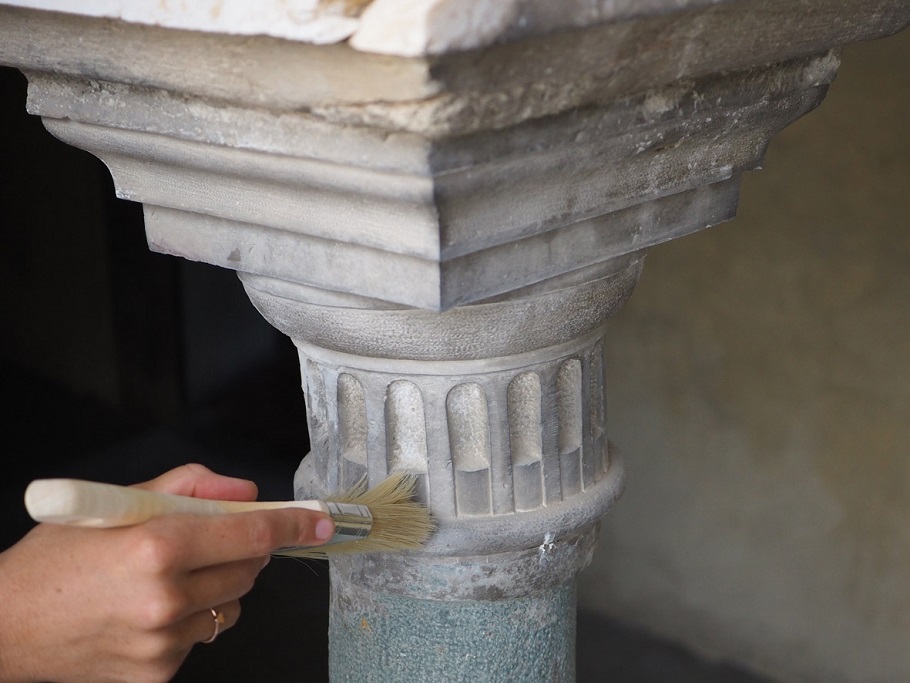 Esso doveva garantire protezione, traspirabilità della muratura, assenza di cambiamenti nelle cromie ed è stato individuato solo dopo confronti e misurazioni specifiche, in accordo con Sonia Segimiro della Soprintendenza competente.