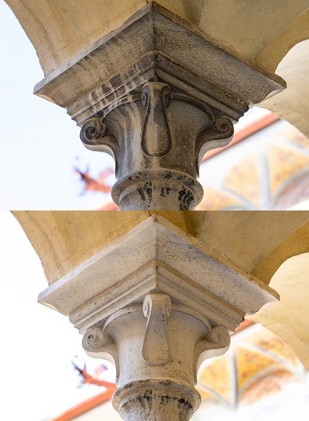 I livelli di degrado erano molto diversificati. Si è intervenuti quindi in maniera puntuale, con materiali, metodologie e trattamenti differenziati a seconda delle zone e delle problematiche riscontrate sulle diverse superfici.