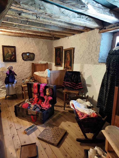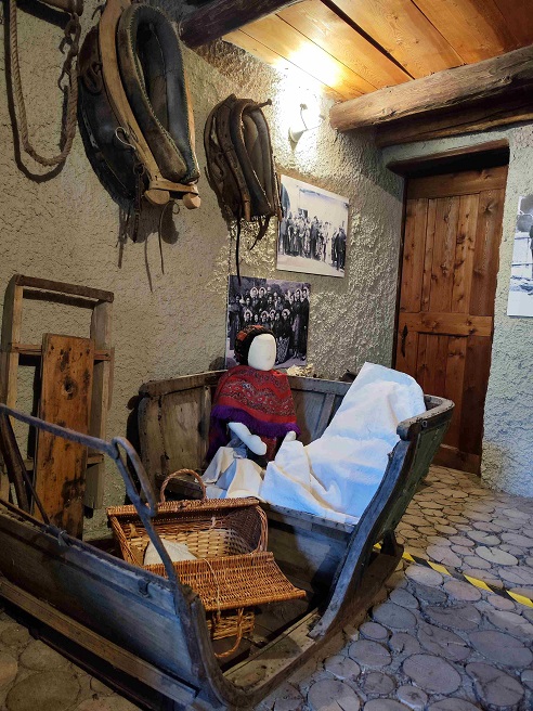 Nei suggestivi spazi dell’ultracentenaria Casa del Sarto, il museo raccoglie e illustra la natura e la funzione di una serie di oggetti d’uso quotidiano in casa e sul lavoro, presentati in differenti ambienti: la stalla, la cucina, la camera da letto, il fienile, la cantina e il caratteristico “croutin”: ambienti in cui si respira il passato e si rivivono scene di vita quotidiana emblematiche della laboriosità della gente di montagna e della sua propensione alla vita comunitaria.