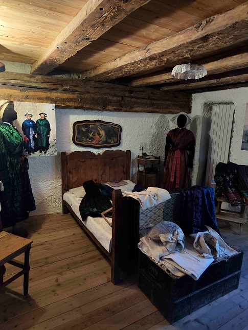Nel museo si trovano anche la biancheria per la casa, gli abiti da lavoro e per i giorni di festa e la collezione di antichi costumi tradizionali, che hanno assunto le loro attuali caratteristiche e forme attraverso la progressiva sovrapposizione della cultura savoiarda francofona alla preesistente cultura escartonese francofona provenzale alpina.