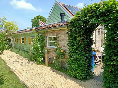 Ristrutturata con molti materiali ecologici, come le pareti con stucco di argilla, e dotata di pannelli solari, di questa casa vi conquisterà l’atmosfera fatta di accenti colorati. Curiosità: al grande albero di pero sul retro del giardino è appesa una casetta per i gufi da cui – se siete fortunati – potreste assistere alle prime lezioni di volo dei nuovi arrivati.
