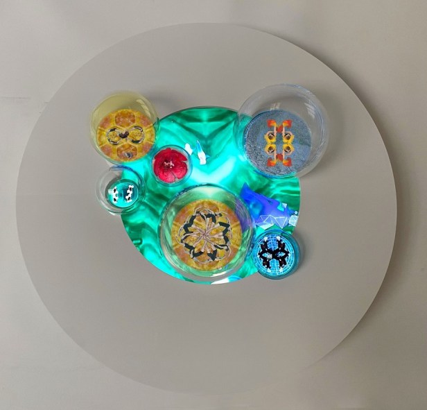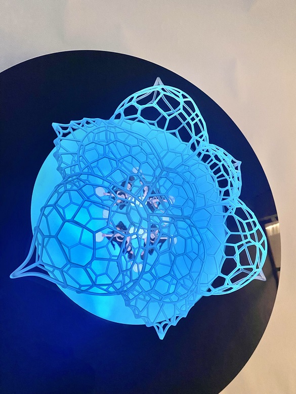 Partendo da verità scientifiche l’artista riesce a dare vita a opere d’arte che si servono di un linguaggio estetico magnetico e suggestivo, capace di far scivolare l’osservatore in un mondo di stupefacente bellezza. Per dare forma alle sue video sculture, un mix di vetro soffiato e monitor, Loher parte dall’osservazione di fotografie e visioni al microscopio del plancton, alle quali sovrappone complesse coreografie. I corpi di uomini e donne, ripresi dall’alto, danno vita a una danza che simula il movimento di elementi microscopici, fluttuanti e vivi.