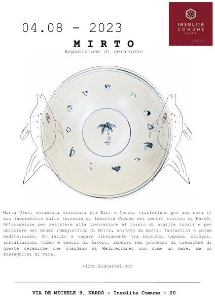 Un invito ad entrare nel mondo immaginifico di Mirto, a vagare liberamente tra brocche, capase, disegni, installazioni video e banchi da lavoro, immersi nel processo di creazione di queste ceramiche che guardano al Mediterraneo come un susseguirsi di mare.