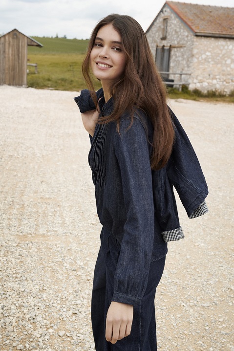 Per la collezione autunno/inverno 2023, Ines ritorna alle radici che hanno definito in origine il suo stile. Il workwear, di uso quotidiano in Francia all’inizio del XX secolo, aveva una funzione pratica che conferiva ai capi uno stile pulito e minimalista, che piace tanto a Ines e spiega perché è parte integrante del suo guardaroba. I vestiti realizzati con materiali naturali come il cotone e la lana, sono perfetti per essere indossati tutti i giorni. Il denim, che si dice abbia avuto origine nella regione di Nîmes nel sud della Francia, è un materiale chiave per questa collezione, utilizzato oltre che nei jeans, anche in vestiti, giacche e camicie. Gli articoli di maglieria hanno una palette di sfumature tra l’arancione e il rosso che evoca la natura.