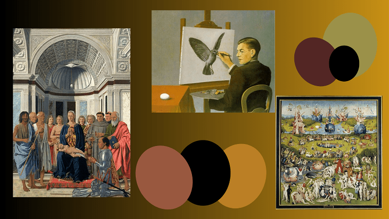 Quella stessa beatitudine sarà ricercata da alcuni dei personaggi dipinti da Hieronymus Bosch, nel trittico “ Giardino delle delizie “ il guscio delle uova, in questo caso, è rotto — non integro quindi, come la testa della maternità dell’artista barese — e gli esseri umani ci si tuffano letteralmente agognando il ritorno ad uno stato di pace.