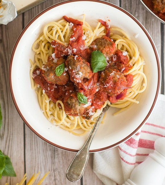 Gli spaghetti con polpette sono un piatto unico, appetitoso e sostanzioso.