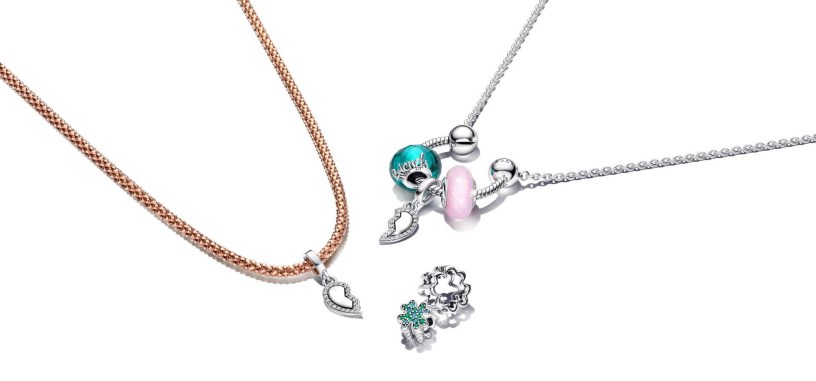 La nuova collezione firmata da Pandora comprende due design a maglia snake che ampliano le possibilità di indossare i charms in modo creativo: la Collana Pendente Ferro di Cavallo Componibile e i nuovi Orecchini Cerchi Componibili Piccoli. Entrambe sono perfette per indossare i nuovi charms dell’amicizia a forma di simboli tradizionali della fortuna come il ferro di cavallo, il quadrifoglio e i cuori.