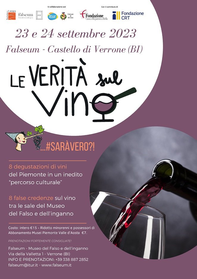 Ciascuna stanza ospiterà una postazione presidiata dal produttore di uno dei più apprezzati vini piemontesi e vi si potranno degustare, ed eventualmente acquistare, le etichette ospitate, identificabili non solo dal loro gusto inconfondibile, ma, spesso, associate anche a leggende metropolitane, luoghi comuni o curiose credenze popolari: il compito di Falseum, solitamente rivolto alla stimolazione del senso critico, stavolta sarà proprio quello di fare chiarezza in merito a tali credenze, grazie alla presenza di sommelier o narratori del vino appositamente formati sul tema e attingendo alla storia, all’arte e alla scienza che compenetrano il mondo dell’enogastronomia.