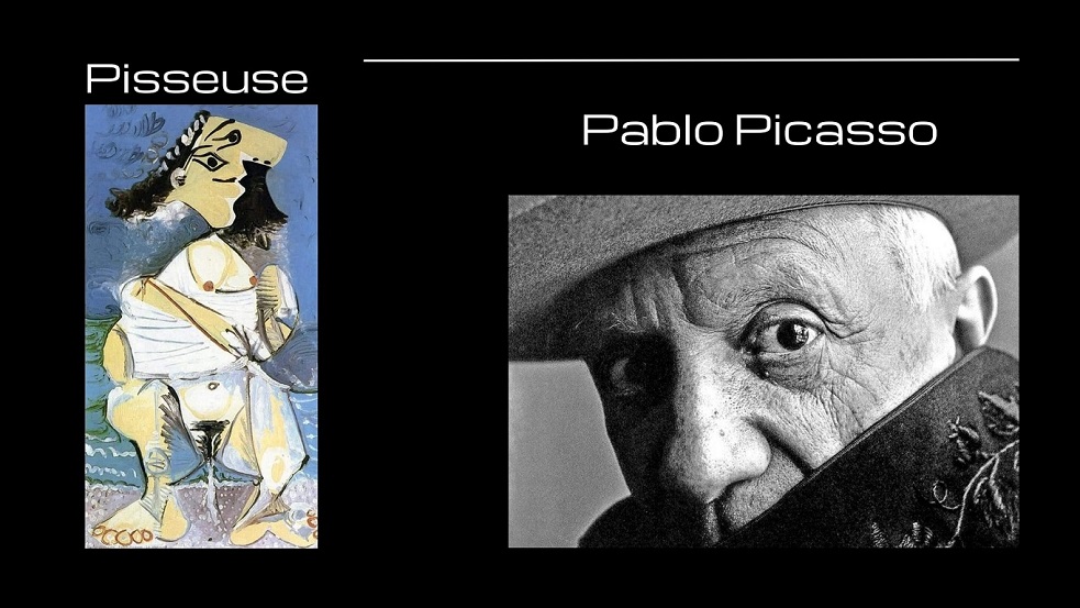 Nel 1965, Pablo Picasso sfida l’eleganza che contraddistingue Giovane donna al bagno in un ruscello di Rembrandt, “distorcendone” i lineamenti e battezzandola “Pisseuse “ — in pratica “Donna che piscia”, la lingua francese confonde e maschera — mentre Afrodite e il suo mito — beltà nata dalla schiuma dello sperma di Urano — apportano alla stessa la ruvidità — preziosa e classicheggiante — degli affreschi cretesi.