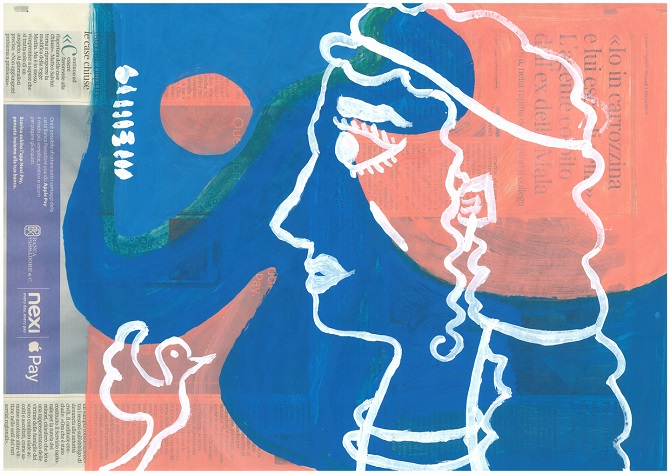 Maria Elena Moioli - Dopo la laurea magistrale in Scienze Filosofiche presso l’Università degli Studi di Milano e diversi anni di esperienza nel campo della comunicazione per la moda, Maria Elena Moioli inizia a dipingere da autodidatta nel 2017, in risposta a una specifica esigenza creativa. La sua estetica, influenzata dagli studi umanistici e dal percorso lavorativo (con particolare focus sulle possibili intersezioni tra moda, arte e design), trae ispirazione dal suo personale mondo interiore, dall’universo del mito e della fantasia e dalla dimensione onirica, aprendo un dialogo tra simbolico, immaginario e realtà. La sua ricerca artistica predilige media e supporti “poveri” (carta di giornale, cartone, scapoli di tessuto) con un gesto che è al contempo di recupero e trasformativo: nell’incontro con elementi di scarto si intravedono nuovi mondi e nuove possibilità. Nel 2023 ha partecipato alla mostra collettiva Creative Stories of Resilience: Enduring, Adapting, Thriving a Washington D.C. negli Headquarters della World Bank e successivamente presso gli edifici dell’IFC. VOLO è la sua prima mostra personale.