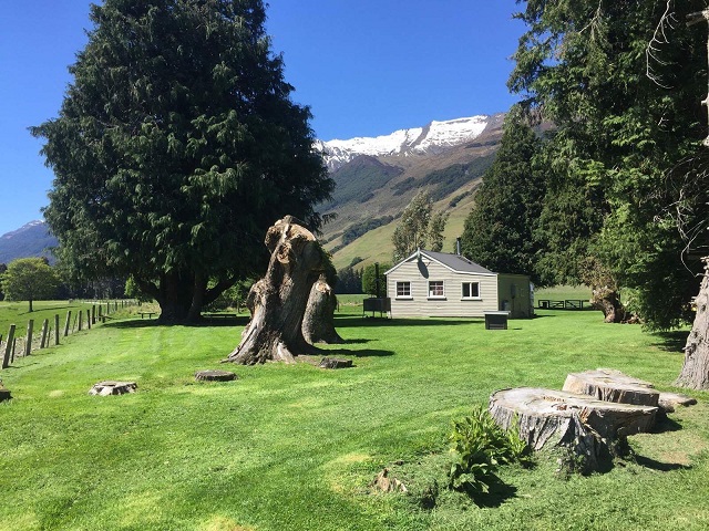 Costruita nel 1945, questa vecchia scuola è una delle proprietà più antiche della Valle di Makarora, in Nuova Zelanda. Passeggiando nel giardino popolato da pecore, gli ospiti potranno ammirare anche lo storico scuolabus “Billy”.