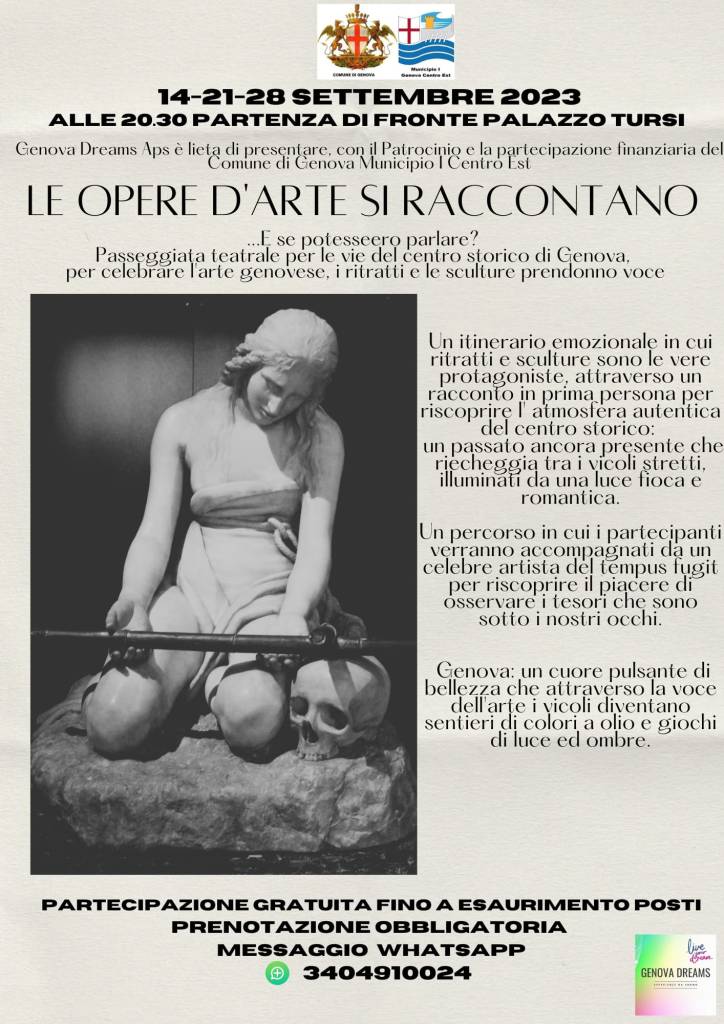 Genova Dreams Aps presenta, con il Patrocinio e la partecipazione finanziaria del Comune di Genova Municipio I Centro Est, Le Opere d’Arte si raccontano.