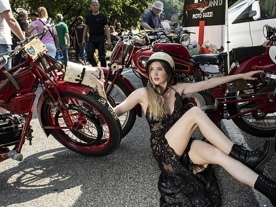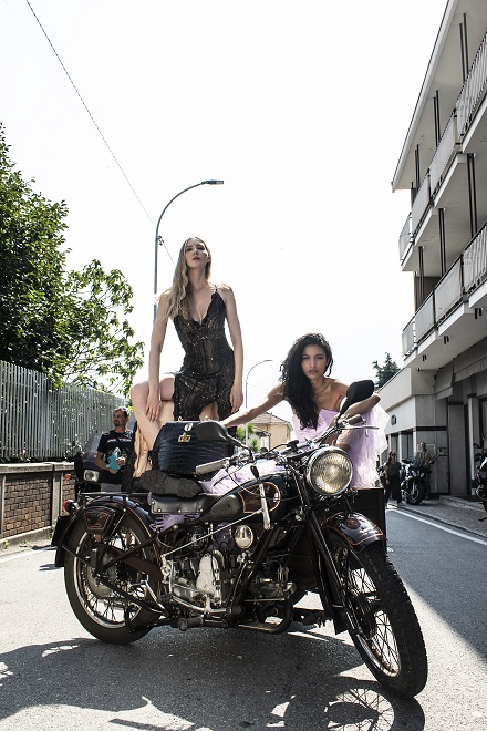 Mandello Lario e il Raduno Internazionale hanno fatto da spettatori di uno shooting che ha fuso l’eleganza e il glamour della moda con il fascino naturale del paesaggio circostante e delle bellissime moto presenti.