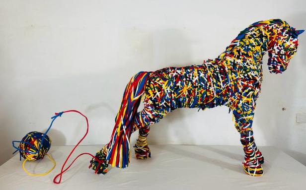 Ilaria Di Meo è presente con un’originalissima opera scultorea, un pony a grandezza naturale, realizzata con fili intrecciati nei colori primari, “Sul filo dei ricordi” ispirata dal suo desiderio di bambina di possedere un pony.