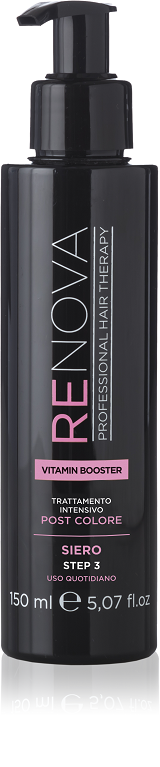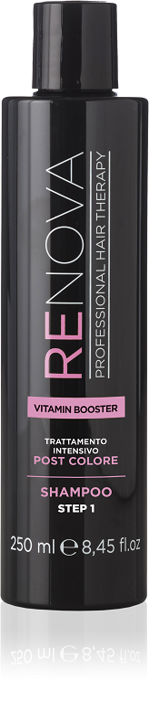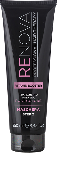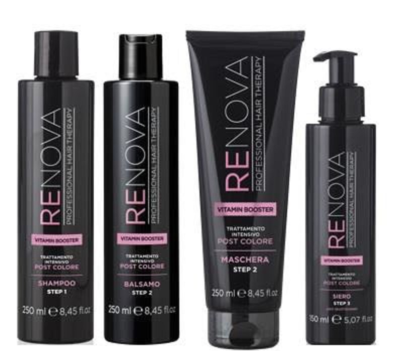 Il nuovo trattamento intensivo post colore di RENOVA è stato appositamente formulato per prolungare la durata del colore, dando nuova vita ai capelli colorati. Questa straordinaria linea di prodotti è arricchita con il potentissimo Vitamin Booster, un complesso vitaminico (Vitamina A, E, B6) capace di proteggere e rinforzare i capelli colorati, prolungando la durata del colore e migliorandone la brillantezza.