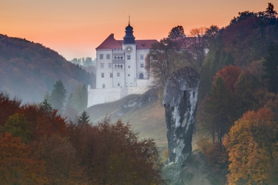 Il Castello di Pieskowa Skala fu costruito nel XIV secolo per volere del re Casimiro il Grande come parte della rete difensiva destinata a proteggere i confini dello stato e la capitale di allora (ndr. Cracovia) e sorge nel Parco Nazionale di Ojcow, nei pressi di Cracovia, luogo che vale la pena visitare perché si possono ammirare numerose grotte e gole formatesi dall’azione dei processi carsici, alcune dalle forme fantastiche, tra cui la più celebre è la Clava di Ercole. Il castello, eretto in stile gotico, è stato oggetto di diversi interventi di ristrutturazione nel corso dei secoli, in particolare durante il periodo rinascimentale e rappresenta oggi uno dei più celebri esempi di architettura difensiva del Rinascimento Polacco. E come ogni castello che si rispetti, anche qui narra la leggenda che … C’era una volta una nobile ragazza chiamata Dorotka che si innamorò di uno scudiero. Il suo amore era corrisposto ma non approvato dal padre della giovane che le fece sposare il vecchio proprietario della residenza, oggi chiamata Pieskowa Skala. La ragazza, non riuscendo a vivere senza amore, scappò insieme al suo amante, ma furono presi e puniti severamente: lui squarciato dai cavalli, lei rinchiusa in una torre sopra la roccia, condannata a morire di fame. Per un po’ di tempo venne aiutata dal suo cagnolino che con fatica si arrampicava sulla roccia. La ragazza alla fine morì e si dice che ancora oggi nel castello riecheggiano i suoi lamenti. Il nome della residenza – letteralmente traducibile come “la roccia del cagnolino” – pare proprio faccia riferimento al fedele cane della povera Dorotka. Sarà vero? Scopritelo voi stessi durante una visita al Castello di Pieskowa Skala, una delle tappe del Sentiero dei Nidi d’Aquila, itinerario che abbraccia due regioni, Slesia e Malopolska, forse una delle zone più belle della Polonia.
