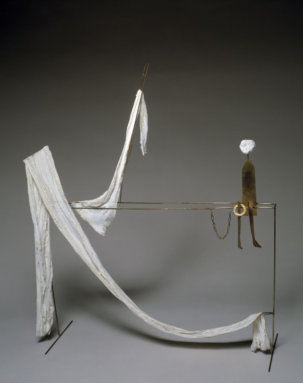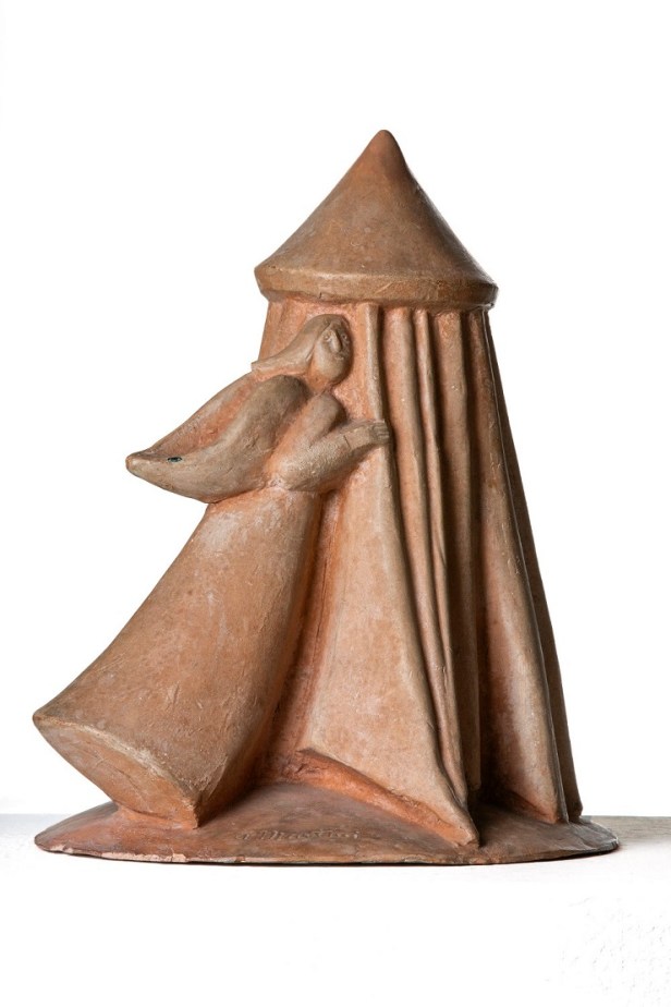 Altrettanto forte è il legame di Fausto Melotti con la mitologia greca – restituito attraverso opere come la terracotta Demetra (1943) e la Kore in ceramica smaltata policroma (1954) – e con l’immaginario cristiano – rievocato in lavori come la ceramica smaltata policroma Madonna con Bambino (1946 circa), l‘Annunciazione (1973) e la composizione scultorea Lazzaro (1980), che combina elementi in ottone, tessuto e gesso.