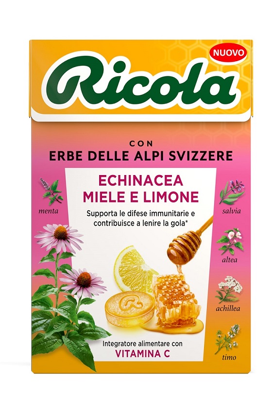 Dal 1930 la famiglia Richterich produce le specialità Ricola con 13 erbe alpine svizzere naturalmente buone; oggi, dal cuore delle Alpi arriva Echinacea Miele e Limone, un prodotto unico, ideale per tutti, tutti i giorni, una caramella fresca e gradevole al palato, ricca di gusto ma anche di vitamina C grazie ai preziosi ingredienti contenuti nell’esclusiva ricetta.