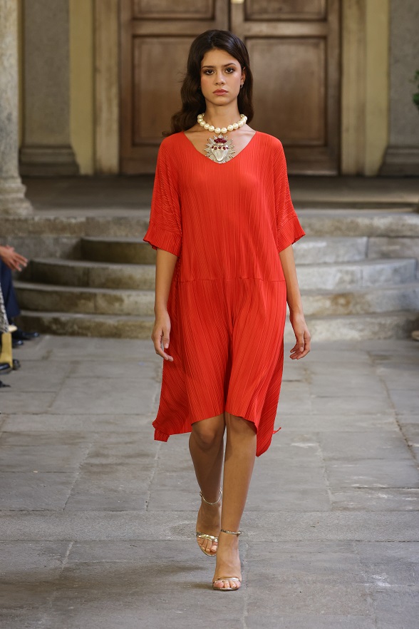 “Suggerire un gusto, una filosofia, senza imporre dei canoni: una moda per tutte le donne, per tutte le età, per tutte le taglie”: la stessa scelta dalle donne che sono scese in passerella per rappresentare il credo di Martino Midali e che nella loro diversità sono unite dal suo stile.