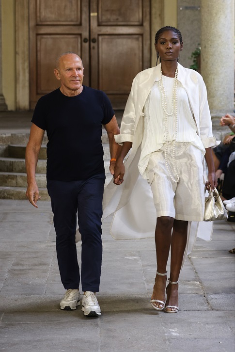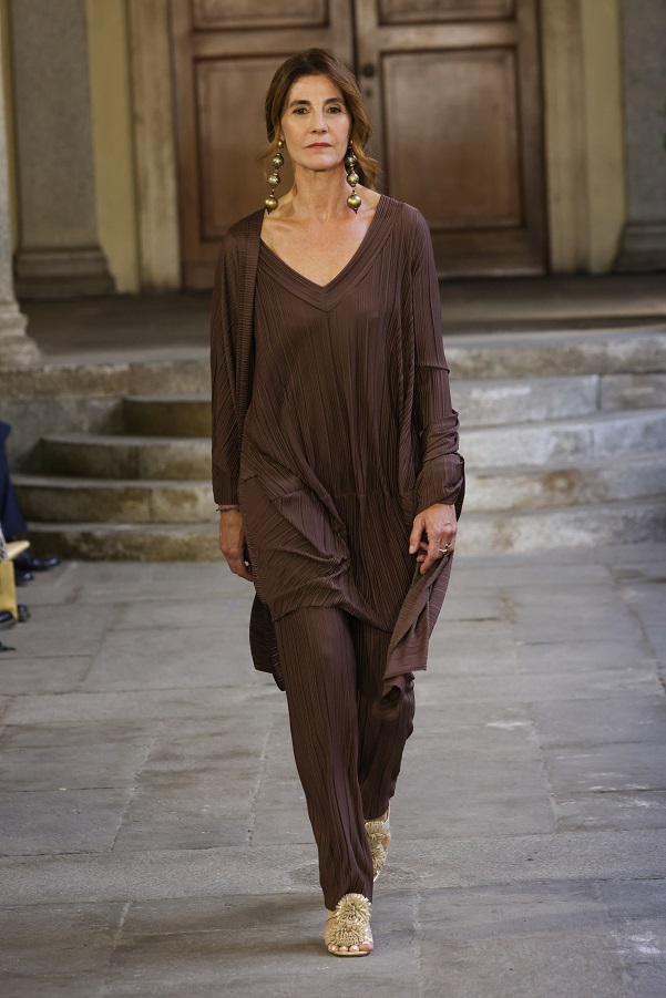 Interpreti della collezione SS24 sulla passerella di Palazzo Isimbardi, accanto alle modelle, sei donne comuni a conferma, una volta di più, dello stile di Midali.