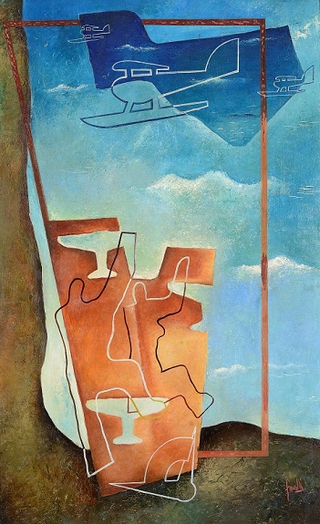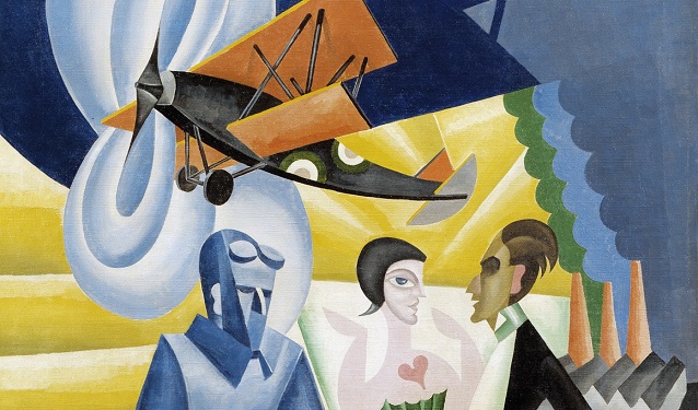 Accanto alla componente cosmica, vi è l’altra declinazione dell’aeropittura, più attenta alla resa verosimile della realtà e alla celebrazione delle conquiste tecniche nel campo aviatorio.