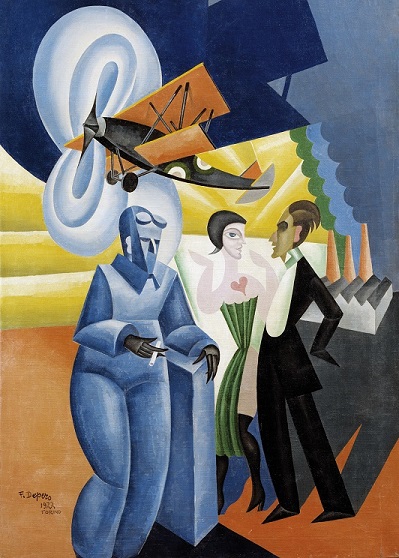 Già alla Biennale del 1926 alcune opere anticipavano il crescente interesse per il volo, tra cui il dipinto Prospettive di volo di Fedele Azari, pittore e aviatore, di cui Fortunato Depero nel 1922 realizza un iconico ritratto, presente in mostra.