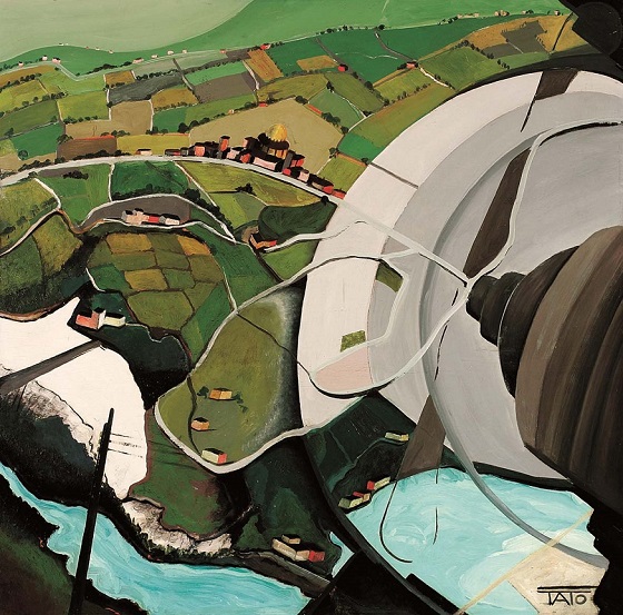 In maniera simile, le dinamiche vedute dall’alto di Alfredo Gauro Ambrosi, come Virata sull’Arena di Verona (1932), o di Tato, come Paesaggio aereo (1932), o ancora le acrobazie aeree di Tullio Crali in Aerocaccia I (Duello di caccia) (1936) permettono di apprezzare inedite prospettive basate sulla pioneristica esperienza del volo degli stessi artisti.