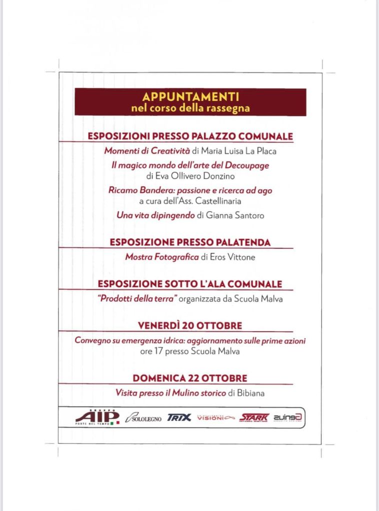Dal 20 al 22 ottobre anche mostre, mercati e tanto altro. Gli eventi gastronomici con prodotti tipici piemontesi. La manifestazione è organizzata dalla Pro Loco di Bibiana con il patrocinio della Città metropolitana di Torino.