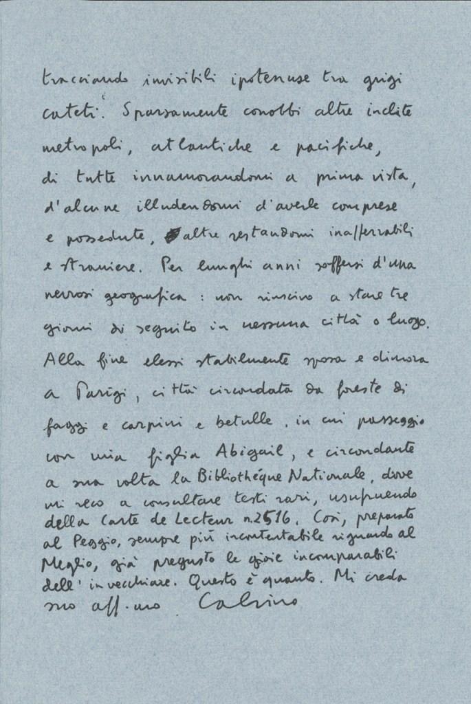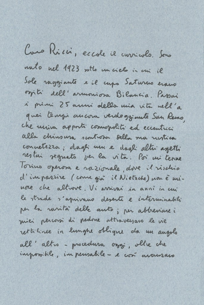 CV di Calvino che mandò a Ricci in occasione della loro prima collaborazione e che venne pubblicato come appendice nel volume Tarocchi e sotto la dicitura: Notizie su Italo Calvino