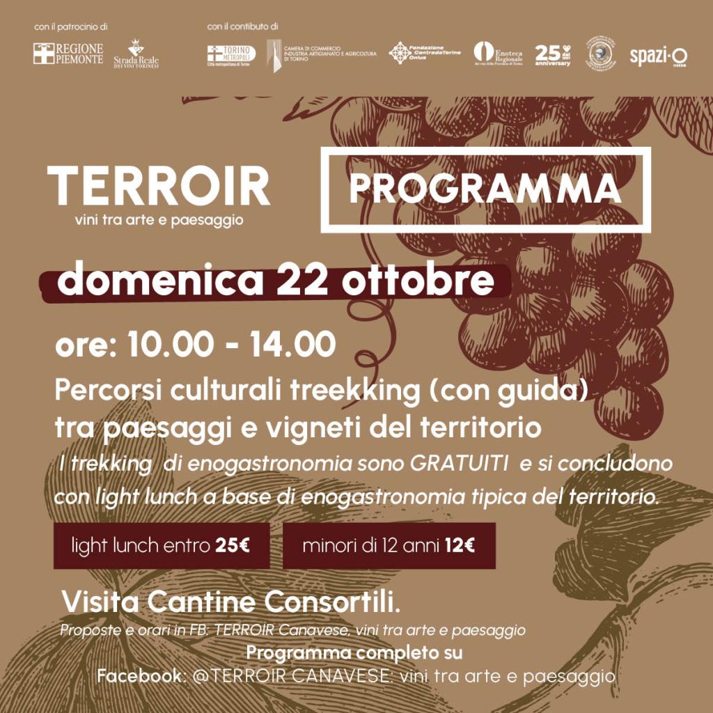 Nel quarto fine settimana di ottobre nel Canavese e nel Pinerolese (Piemonte, provincia di Torino) torna la rassegna Terroir, dedicata al vino e ai territori vitivinicoli in tutti i loro aspetti agronomici, enogastronomici e culturali.