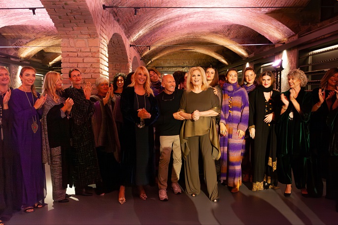 Storia e tradizione tutta italiana all’insegna dell’eccellenza per la sfilata che il brand ha tenuto nella suggestiva location mettendo in dialogo i suoi abiti con l’essenza del luogo e facendoli indossare, in passerella, da donne comuni. Tra gli ospiti intervenuti, anche Iva Zanicchi.