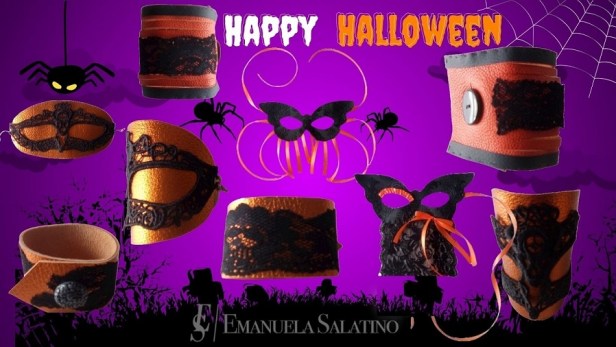 Bracciali, maschere e choker da indossare ai più tenebrosi party di Halloween, rivisitazione personale della designer ispirata ai classici simboli di Halloween.