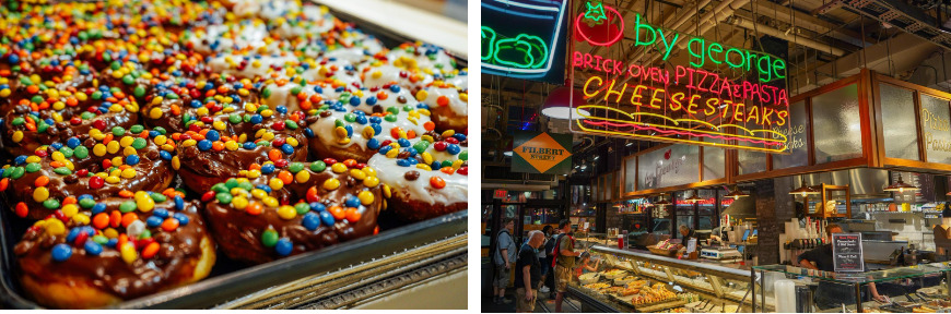 Sia che stiate visitando Philadelphia per una vacanza in famiglia, sia che siate in città per una riunione o un evento al Pennsylvania Convention Center, il Reading Terminal Market è il posto giusto per provare piatti locali e internazionali. Ospitato in un edificio storico nazionale, il Reading Terminal Market è uno dei più grandi e antichi mercati pubblici degli Stati Uniti ed è stato votato come uno dei migliori mercati pubblici della nazione da USA Today 10Best. Con oltre 80 commercianti, tra cui decine di ristoranti, è una tappa super consigliata per i visitatori che vogliono gustare un assaggio di Philadelphia. Per quanto riguarda i dolci, non si può lasciare il mercato senza un cannolo alla ricotta dei Termini Brothers, una leggendaria panetteria di South Philadelphia, o le tradizionali ciambelle dei venditori Amish.
